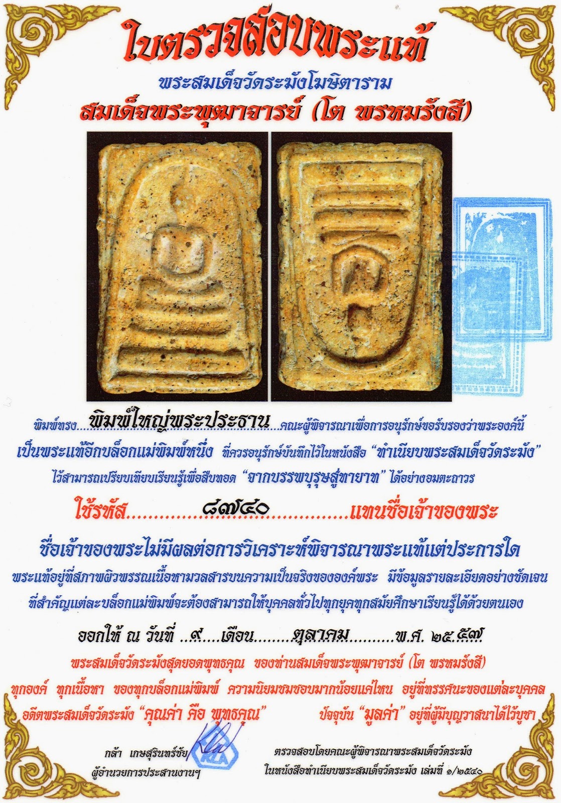Name of the image of Buddha : Phra Somdej Wat Rakang Pim Yai Ok V
